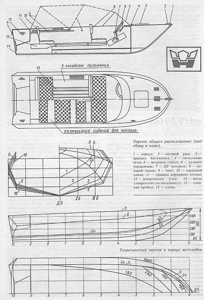 с углом внешней килеватости на транце 13,5°. Корпус мотолодки собирается