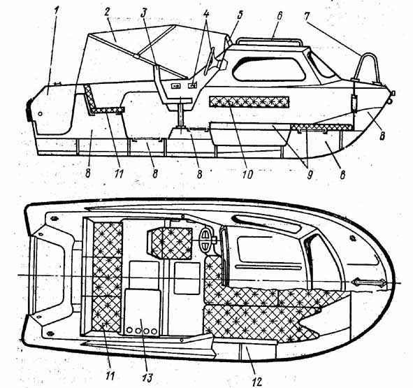 80—100 л. Крышки бортовых шкафчиков в рубке лучше всего устанавливать на