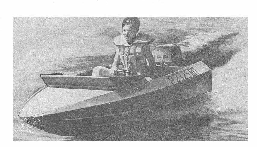 Когда-то в "КиЯ" широко обсуждались проблемы создания глиссирующих мотолодоки картоп, пригодных для перевозки на верхнем багажнике легкового автомобиля. И вот в № 55 промелькнула небольшая заметка об английской микромотолодке "Апполо", характеристики которой поразили тогда мое воображение. В самом деле, при длине всего 2,8 м корпус лодки имел обводы "глубокое V" и с 25-сильным подвесным мотором "Джонсон" развивал скорость 66 км/ч. В то время автор был молодым инженером, конструктором по двигателям внутреннего сгорания и решил испытать себя в судостроении. Вдохновленный упомянутой заметкой, я за несколько часов работы вычертил обводы корпуса подобной лодки и вскоре приступил к ее постройке.