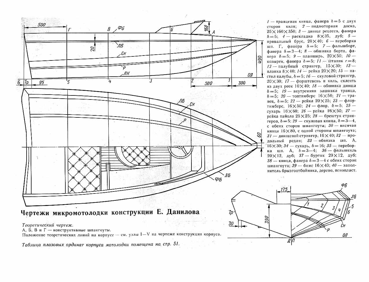 Чертежи микромотолодки конструкции Е. Данилова