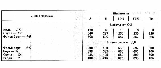 Таблица плазовых ординат корпуса мотолодки