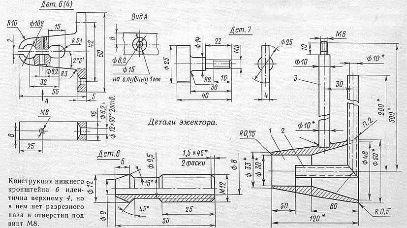 Конструкция эжектора проста и понятна из приводимых чертежей. Думается, что если бы эти столь необходимые приспособления были освоены промышленностью, они бы пользовались спросом.